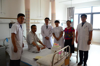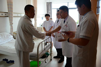 每月吉林國(guó)文醫(yī)院黨委都會(huì)委派副書記和黨辦主任帶領(lǐng)黨委秘書到療區(qū)給黨員患者過(guò)生日,給黨員患者送上生日蛋糕、佩戴黨徽并合影留念。
