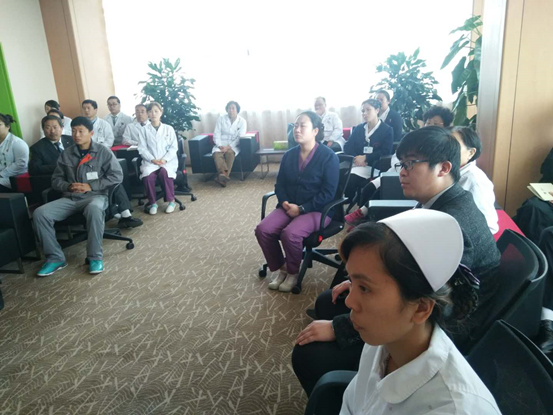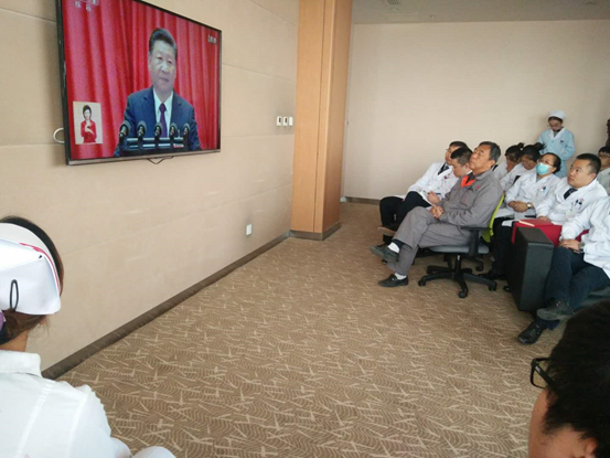 國文醫(yī)院黨員們屏息靜氣聽習(xí)主席作報告,一直到下班的音樂響起,都無一人離席。因工作原因,直到黨委副書記讓大家回去繼續(xù)觀看,大家才一一退場。