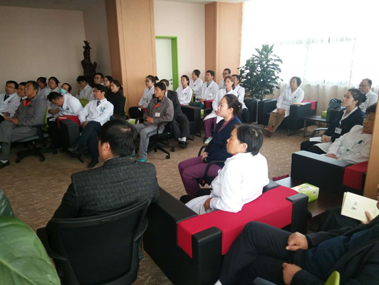 2017年10月18日上午9:00,在門診五樓體檢中心VIP接待室,吉林國文醫(yī)院黨委召集院內(nèi)黨員集體觀看黨的十九大開幕式,其中到場了40余人,其余未到者皆是在手術(shù)室給患者做手術(shù)或請假。