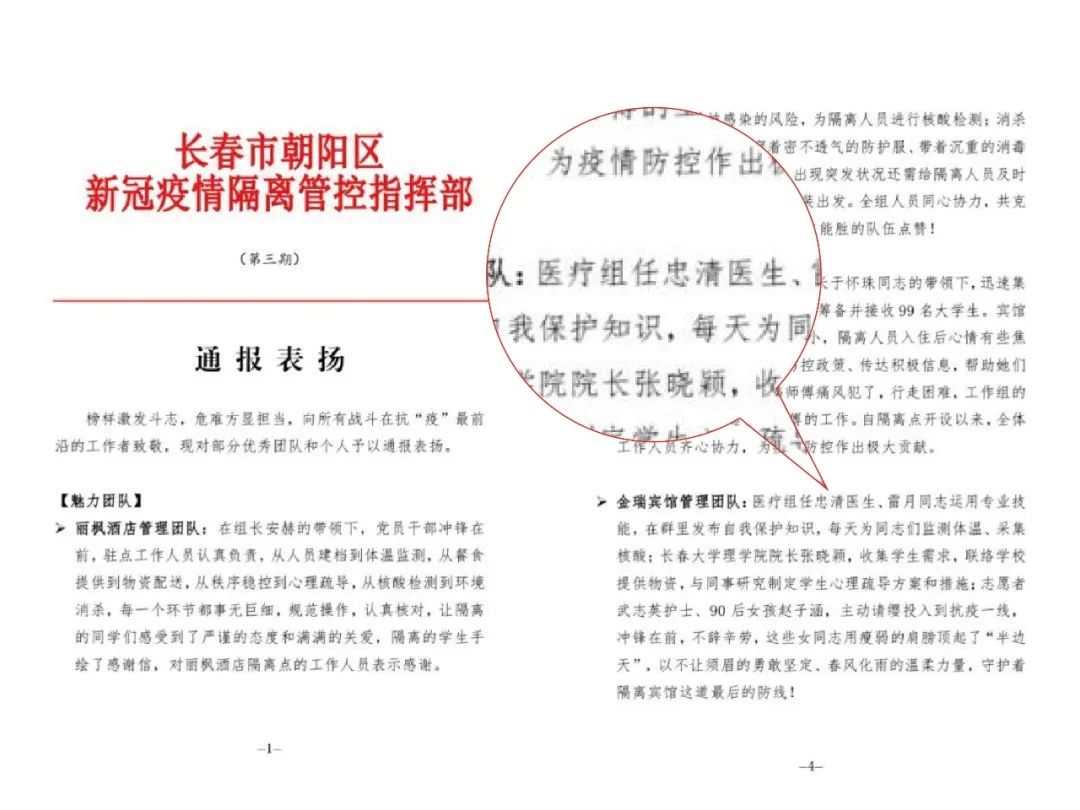 3月31日,長春市朝陽區(qū)新冠疫情隔離管控指揮部對疫情防控工作中表現(xiàn)優(yōu)秀的集體和個人(第三期)予以通報表揚。國文醫(yī)療集團(長春院區(qū))產(chǎn)科醫(yī)生任忠清作為優(yōu)秀個人被通報表揚。