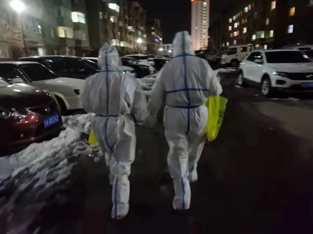 還有一次,晚上12點(diǎn)接到了任務(wù),爬樓做核酸,特別老舊的小區(qū),樓道里也沒(méi)有燈,我和網(wǎng)格長(zhǎng)爬上去發(fā)現(xiàn)留下的地址、電話號(hào)碼都不對(duì),正全神貫注找信息的時(shí)候,抬頭看見(jiàn)一雙綠眼睛,把我倆都嚇得坐在地上了,后來(lái)發(fā)現(xiàn)是一只貓。我倆互嘲了一下對(duì)方膽子小,之后的工作和網(wǎng)格長(zhǎng)小姐姐一直手牽手,我倆戰(zhàn)勝了恐懼,現(xiàn)在也成了很好的朋友。