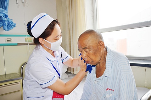 4月17日,吉林國(guó)文醫(yī)院外二科收治一名前列腺增生和睪丸炎、腦血栓后遺癥老年五保戶(hù)病人,生活不能自理。病人入院時(shí),穿的衣服上非常臟而且有異味,暴露在外面的皮膚布滿(mǎn)污垢,護(hù)士長(zhǎng)王丹帶領(lǐng)護(hù)士張慧慧給老人洗頭、洗腳、擦洗皮膚并且把老人的臟衣服洗得干干凈凈。