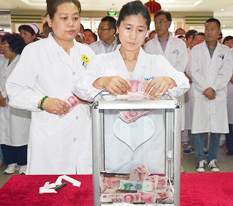 秋風(fēng)煞爽,當(dāng)一切都那樣的自然平靜,一場災(zāi)難卻降臨到一個(gè)柔弱的女生身上,他就是血液腫瘤科患者常智清。于2010年前正值大學(xué)美好生活時(shí),她由于牙齦出血,乏力,發(fā)現(xiàn)貧血,后就診于吉大二院,行骨髓穿刺后診斷為再生障礙性貧血,她是單親家庭,只有一位相依為命的母親常年陪伴在左右,由于經(jīng)濟(jì)原因,僅給予輸血、止血等相關(guān)支持對(duì)癥治療維持生命?,F(xiàn)患者已無力支付血費(fèi)及醫(yī)藥費(fèi)。在了解情況后,我院員工為滿足患者常智清對(duì)生命的憧憬與渴望,激起她對(duì)生活的熱情與希望,為生命貢獻(xiàn)自己的一份力量,于今年10月14日國文醫(yī)院員工自發(fā)為貧困患者常智清捐款行動(dòng),截止到10月18日,已接收到全院十幾個(gè)科室捐款近7000余元,將全部用于患者的治療。