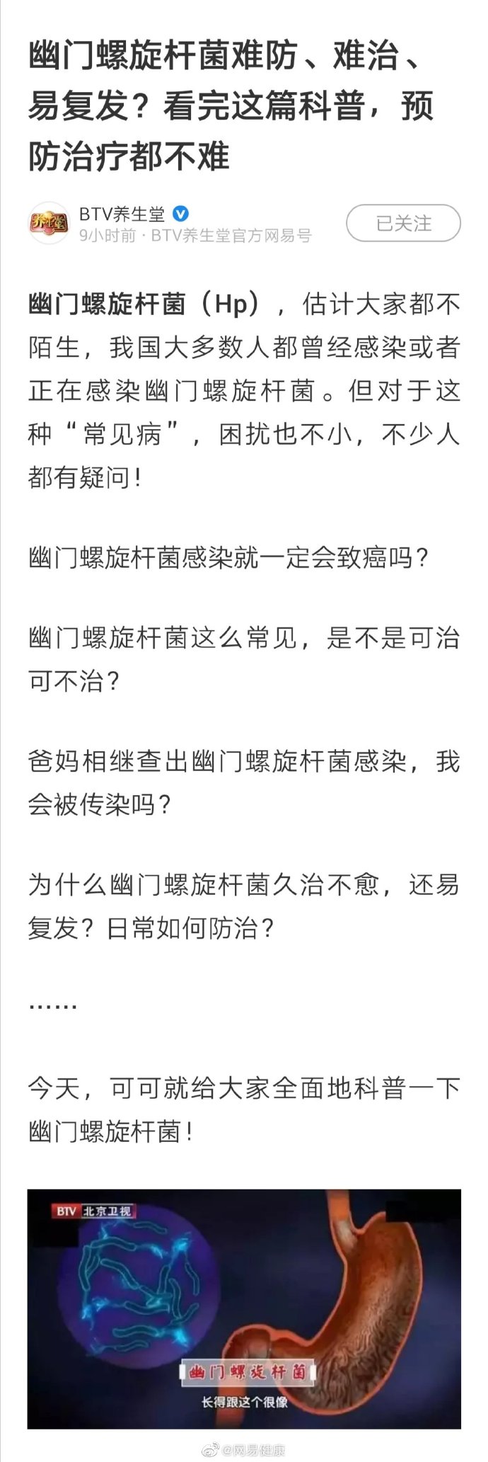幽門(mén)螺旋桿菌(Hp),估計(jì)大家都不陌生,我國(guó)大多數(shù)人都曾經(jīng)感染或者正在感染幽門(mén)螺旋桿菌。幽門(mén)螺旋桿菌感染就一定會(huì)致癌嗎?幽門(mén)螺旋桿菌這么常見(jiàn),是不是可治可不治?為什么幽門(mén)螺旋桿菌久治不愈,還易復(fù)發(fā)?日常如何防治?