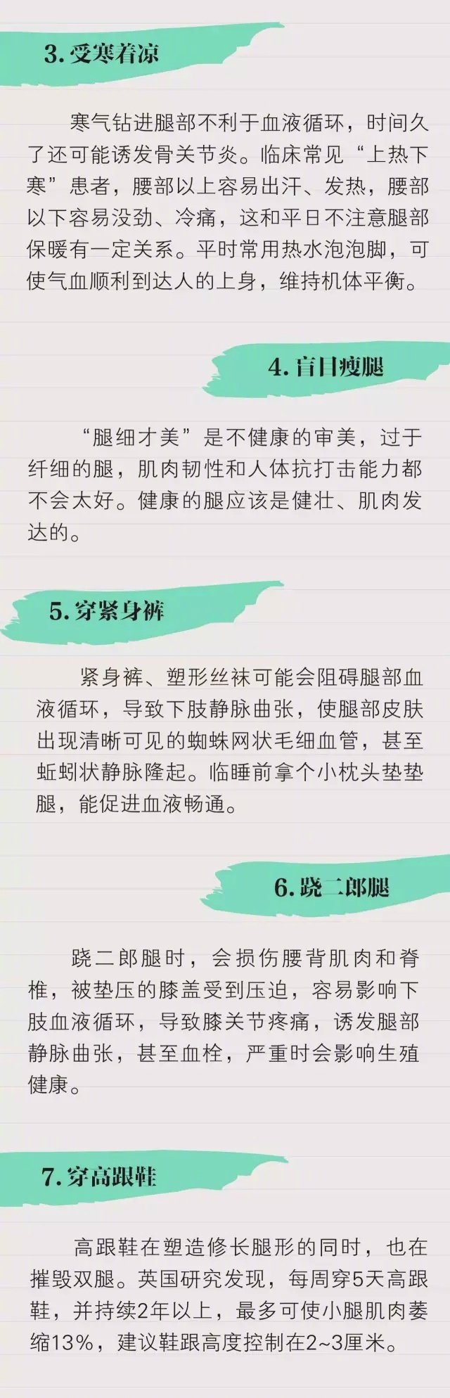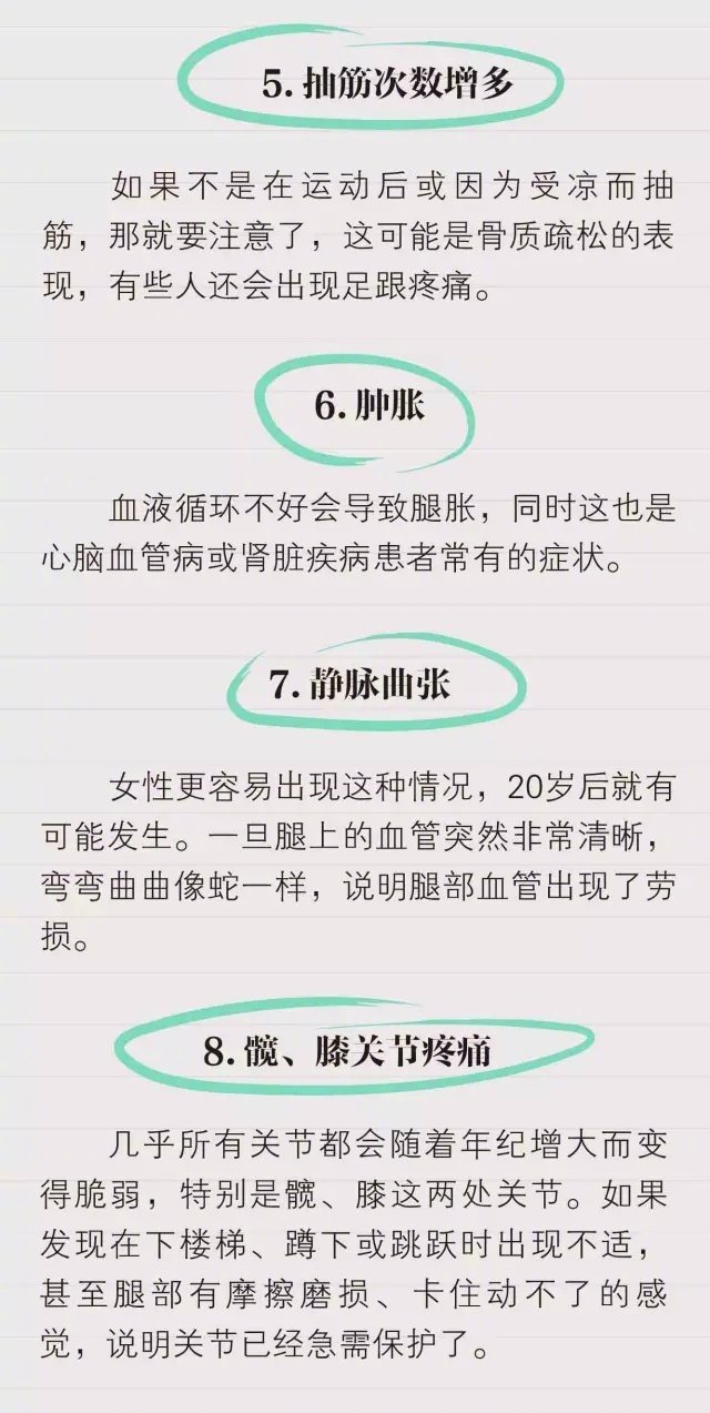 護(hù)腿秘籍,有種說法, 腿是人的第二心臟。哪些方式最傷腿?腿部的哪些變化預(yù)示著衰老?怎么護(hù)腿?看看這份秘籍~