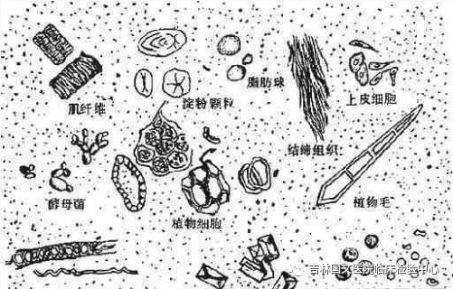 消化道出血或下消化道炎癥時可出現(xiàn)數(shù)量不等的紅細胞;白細胞增多可能為腸炎、菌痢和過敏性腸炎等;吞噬細胞可見于急性細菌性痢疾、急性出血性腸炎,偶見于潰瘍性腸炎;健康人便中很少見到腸粘膜上皮細胞,增多可見于結(jié)腸炎癥和偽膜性腸炎。