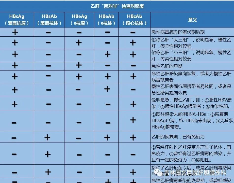 乙肝兩對半檢查中,乙肝表面抗原(HBsAg)、乙肝表面抗體(HBsAb)、乙肝e抗原(HBeAg)、乙肝e抗體(HBeAb)、乙肝核心抗體(HBcAb)其中1、3、5項呈陽性為大三陽,1、4、5呈陽性為小三陽。