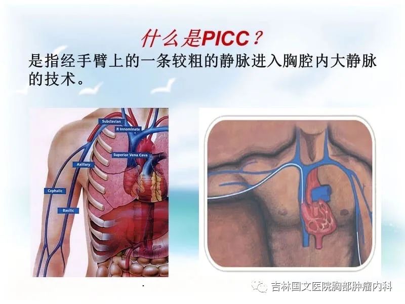 它是利用導(dǎo)管從外周手臂的靜脈進(jìn)行穿刺,導(dǎo)管直接進(jìn)入心臟附近的大靜脈。它避免了化療藥物與手臂靜脈的直接接觸。大靜脈血流量大,化療藥物可迅速稀釋,防止藥物對靜脈的刺激。