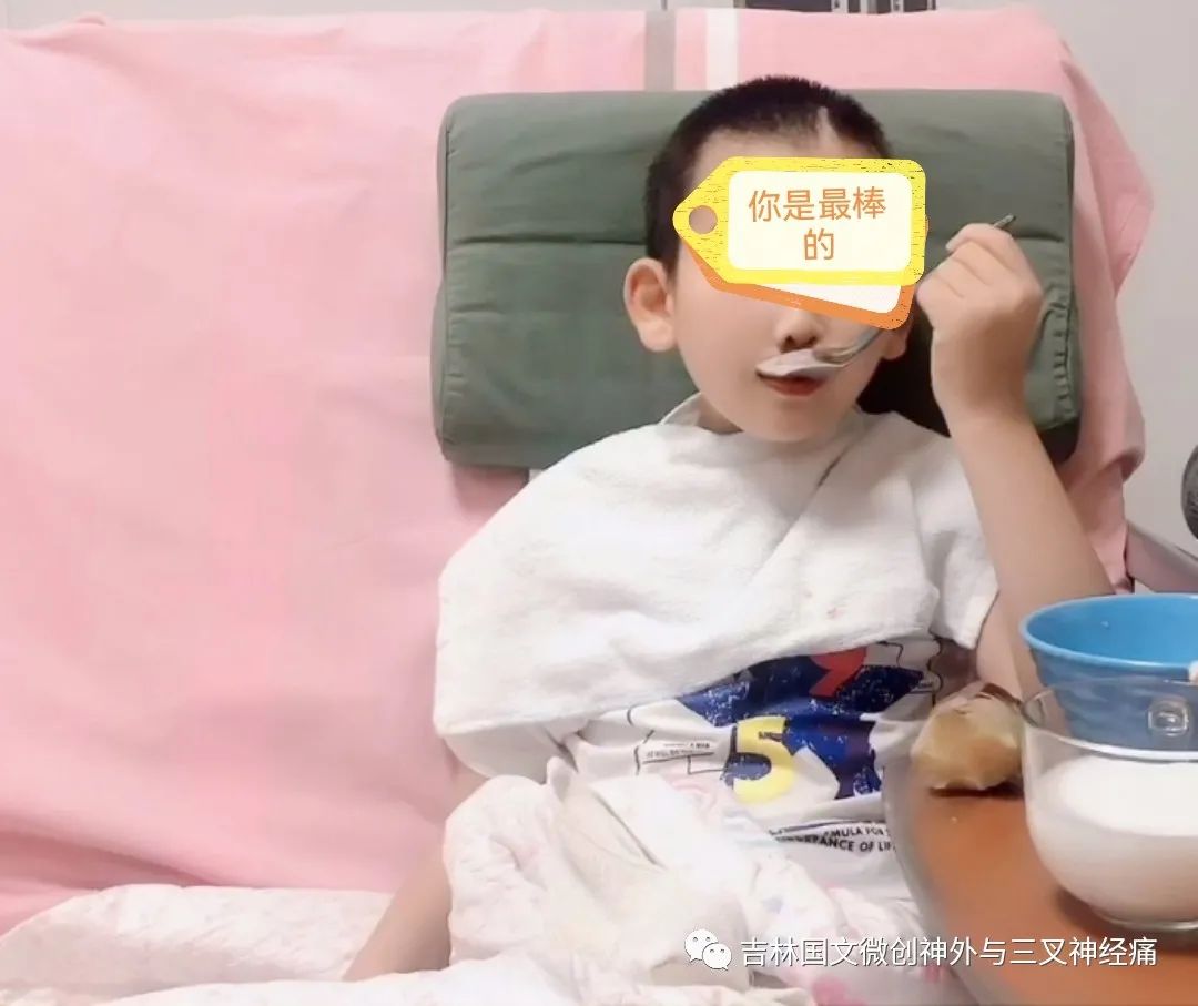 終于!功夫不負(fù)苦心人,在術(shù)后11天的時(shí)候病人能睜眼了,還能發(fā)出聲音,這一突破不僅讓家屬喜極而泣,也讓我們?nèi)f分高興,同時(shí)也松了一口氣,主任說(shuō),這孩子的命總算保住了。在護(hù)理姐妹的精心的護(hù)理與治療下、在家人無(wú)微不至的照顧下,現(xiàn)在這個(gè)小病人不但能進(jìn)行語(yǔ)言交流,而且還能自己吃飯,肢體功能有了很大的進(jìn)步,攙扶著已經(jīng)能夠站立了。每次查房看著孩子天真爛漫的笑容和揮揮手說(shuō)一聲“謝謝”,心中無(wú)比的自豪,因?yàn)槲乙彩沁@個(gè)團(tuán)隊(duì)的一員。