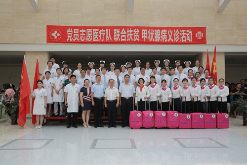 8月13日上午,黨員志愿醫(yī)療隊(duì)聯(lián)合扶貧甲狀腺病義診活動在吉林國文醫(yī)院舉行。此次活動是由中日聯(lián)誼醫(yī)院黨委甲狀腺外科黨支部和吉林國文醫(yī)院黨委主辦,全國著名甲狀腺專家孫輝主任帶領(lǐng)團(tuán)隊(duì)21名中共黨員為公主嶺市及周邊縣市500名甲狀腺患者免費(fèi)義診。