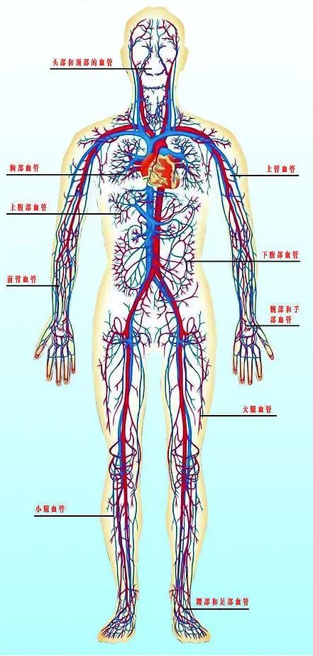 圖中紅色為動(dòng)脈,藍(lán)色為靜脈