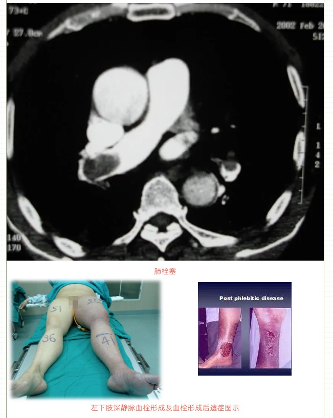 由于下肢靜脈血栓形成導(dǎo)致下肢靜脈血液回流受阻,可能出現(xiàn)單側(cè)腿腫脹、疼痛等表現(xiàn),若出現(xiàn)血栓脫落還可能會(huì)導(dǎo)致肺栓塞,嚴(yán)重者可危及生命!如果下肢深靜脈血栓形成沒(méi)有接受規(guī)范治療,等血栓機(jī)化后,有可能會(huì)出現(xiàn)下肢反復(fù)腫脹(晨輕暮重)、皮膚色素沉著、下肢靜脈曲張等表現(xiàn),這就是深靜脈血栓形成后綜合征,也叫血栓后遺癥。