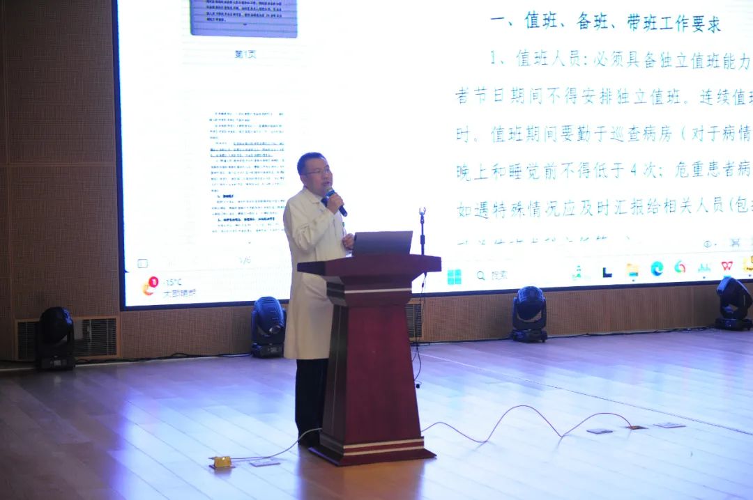 醫(yī)務(wù)處劉寶安處長(zhǎng)要求全院各臨床科室做好春節(jié)期間的醫(yī)療安全工作和值班工作,要求全院臨床科室要合理配備值班人員,嚴(yán)格落實(shí)各項(xiàng)醫(yī)療管理制度,加強(qiáng)備班力量,全力保障春節(jié)期間的醫(yī)療安全,確保患者的健康和生命安全不受影響。