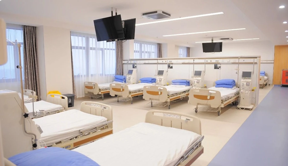 國文醫(yī)院血液透析中心根據(jù)血液凈化SOP要求的功能分區(qū)和感染控制要求建造,環(huán)境舒適。配備世界先進的德國貝朗血液凈化設備及雙級反滲水處理系統(tǒng)。常規(guī)開展血液透析、腹膜透析、血液透析濾過、血液灌流、單純超濾、可調鈉透析、序貫透析、無肝素透析、體外肝素化透析等。血液透析室不僅可以提供急慢性腎衰的腎臟替代治療,并能為非腎病患者提供重要的支持療法,為急危重癥及難治性患者提供新的有效治療手段和個體化治療方案,確保透析充分,提高生存率和生活質量,幫助患者回歸社會。