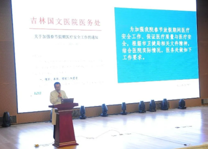新春佳節(jié)臨近,為確保春節(jié)期間醫(yī)院各項(xiàng)工作平穩(wěn)運(yùn)行,給廣大患者提供一個(gè)高效、優(yōu)質(zhì)、安全的就醫(yī)環(huán)境。1月23日下午,國文醫(yī)院召開2025年春節(jié)前安全培訓(xùn)大會(huì),醫(yī)院領(lǐng)導(dǎo)班子、中層干部及全院職工共同參加會(huì)議。