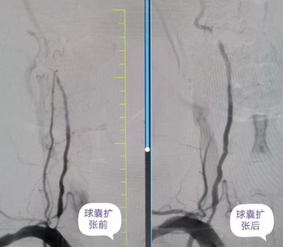 術(shù)中,丁金明主任、朱洪波副主任帶領(lǐng)團(tuán)隊(duì),通過導(dǎo)管精準(zhǔn)地將球囊送至狹窄的椎動脈段,在確認(rèn)球囊位置準(zhǔn)確無誤后,仔細(xì)地進(jìn)行擴(kuò)張,直至狹窄的血管恢復(fù)到接近正常直徑。整個手術(shù)過程在專業(yè)團(tuán)隊(duì)的精心操作下,僅30分鐘便順利完成。