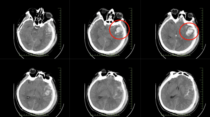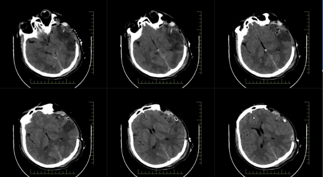 術(shù)中探查患者顱內(nèi)出血量極大,腦組織水腫嚴(yán)重,受壓明顯。在神經(jīng)外科張友軍主任的帶領(lǐng)下,手術(shù)團(tuán)隊(duì)?wèi){借精湛的醫(yī)術(shù)和豐富的經(jīng)驗(yàn),爭(zhēng)分奪秒地進(jìn)行止血操作,降低顱內(nèi)壓。經(jīng)過(guò)長(zhǎng)達(dá) 4 小時(shí)的艱苦奮戰(zhàn),手術(shù)成功完成,患者隨即轉(zhuǎn)入重癥醫(yī)學(xué)科接受進(jìn)一步監(jiān)護(hù)。
