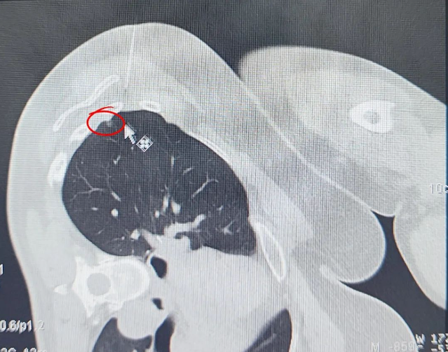 定位技術(shù)升級通過 CT 影像精準鎖定 6mm 磨玻璃結(jié)節(jié)(圖示可見),全程在麻醉狀態(tài)下完成定位操作,顯著降低傳統(tǒng)清醒定位可能引發(fā)的患者緊張情緒及轉(zhuǎn)運風險。微創(chuàng)技術(shù)突破運用精細化微創(chuàng)操作分離粘連組織,在切除病灶過程中精準避讓正常肺組織,經(jīng)術(shù)后影像評估,實現(xiàn)病灶完整清除與健康肺功能保留的平衡。