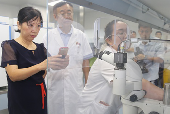 胡云霞今年60歲,出生于公主嶺市,是世界醫(yī)學(xué)輔助領(lǐng)域最權(quán)威的科學(xué)家,此次參加吉商大會,受到省委書記巴音朝魯、省長蔣超良的親切接見,應(yīng)邀來到吉林國文醫(yī)院進(jìn)行參觀考察。上午8時許,在副市長孫淑芹及衛(wèi)計(jì)局、經(jīng)合局負(fù)責(zé)人的陪同下,聽取了吉林國文醫(yī)院院長呂國旗關(guān)于技術(shù)設(shè)備、科室設(shè)置及醫(yī)學(xué)輔助生殖中心發(fā)展的情況介紹。胡云霞對吉林國文醫(yī)院醫(yī)學(xué)輔助生殖中心非常關(guān)注,她一邊觀看,一邊詢問,還不時地拿出手機(jī)進(jìn)行拍照。