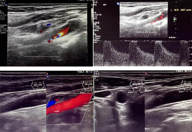 該患者因反復(fù)頭暈前來國文醫(yī)院就診。經(jīng)醫(yī)院超聲科運用高端超聲設(shè)備進行頸動脈超聲檢查后發(fā)現(xiàn),其右側(cè)頸動脈狹窄程度超過 90%。如此嚴重的狹窄狀況,猶如高速公路上的嚴重堵車,使得血液流通受阻,大大增加了腦梗死的風(fēng)險,時刻威脅著患者的生命安全。