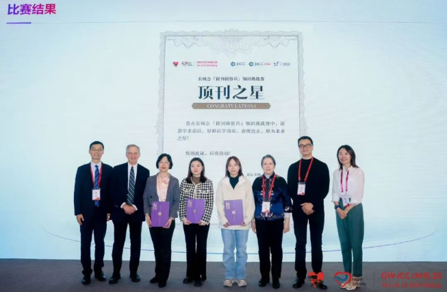 在2025年金秋的長(zhǎng)城國(guó)際心臟病學(xué)大會(huì)上,一場(chǎng)別開(kāi)生面的學(xué)術(shù)交鋒吸引了全場(chǎng)的目光。長(zhǎng)城會(huì)是中國(guó)乃至亞洲的心血管頂尖學(xué)術(shù)盛宴,此次大會(huì)與以往“只聽(tīng)不講”的傳統(tǒng)模式不同,本屆大會(huì)由丁香園聯(lián)合推出的“偵察兵”專場(chǎng)賽,旨在鼓勵(lì)臨床醫(yī)生勇于挑戰(zhàn)、思辨求真。經(jīng)過(guò)多輪激烈角逐,國(guó)文醫(yī)院心內(nèi)科團(tuán)隊(duì)?wèi){借扎實(shí)的學(xué)識(shí)、縝密的邏輯與出色的團(tuán)隊(duì)協(xié)作,從眾多參賽者中脫穎而出,與北京安貞醫(yī)院團(tuán)隊(duì)、浙江醫(yī)科大學(xué)附屬第二醫(yī)院團(tuán)隊(duì)一同會(huì)師總決賽,并最終取得佳績(jī),榮獲大會(huì)至高榮譽(yù)——“頂刊之星”。美國(guó)國(guó)家醫(yī)學(xué)院院士、國(guó)際頂刊JACC主編,耶魯大學(xué)醫(yī)學(xué)院 Harlan Krumholz 教授親自為國(guó)文醫(yī)院心內(nèi)科團(tuán)隊(duì)頒發(fā)了榮譽(yù)證書(shū)。