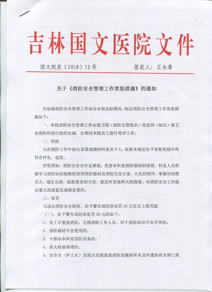 關(guān)于《消防安全管理工作獎懲措施》的通知