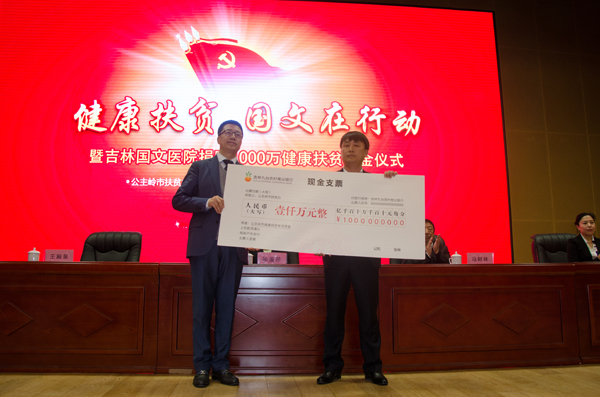 吉林國(guó)文醫(yī)院此次向公主嶺市建檔立卡貧困人口捐贈(zèng)健康扶貧基金1000萬(wàn)元,專項(xiàng)用于幫扶公主嶺市因病致貧、因病返貧的沒(méi)有經(jīng)濟(jì)能力看病的患者。