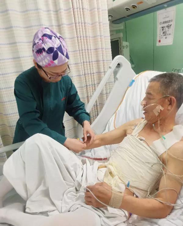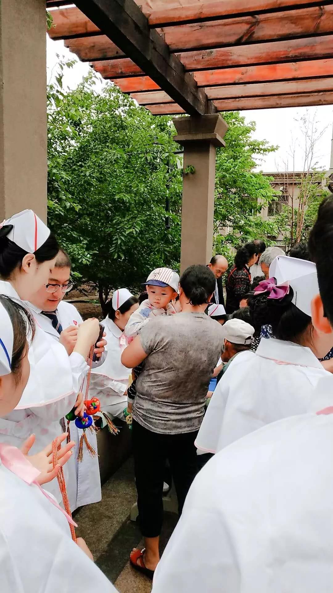 清晨,一縷粽香在重癥醫(yī)學(xué)科病房撲面而來,重癥醫(yī)學(xué)科的南丁格爾團隊在護士長呂丹的帶領(lǐng)下,拿著裝滿香草的香包,五彩繩編織的手鏈來到患者的病床前,紛紛為每位患者戴上手鏈,送上節(jié)日的安康?;颊呃畎⒁陶f:“這是最有意義的端午節(jié),因為也是我的生日”?;颊邉⑹迨逭f:“國文的愛是真心實在的,讓我覺得很溫暖,”說著說著流出激動的淚水。與護士共同做出抗擊病魔的決心,疼痛沒有把人擊倒,而是越戰(zhàn)越強,因為有一群白衣天使在和他們一起作戰(zhàn)。這就是愛的力量,愛的奇妙。傍晚,外面下起了淅淅瀝瀝的小雨,但是并沒有澆滅志愿者的熱心,義診持續(xù)升溫。志愿者來到國文打造的健康住宅上東福里小區(qū),為小區(qū)業(yè)主進行血壓血糖的測量。天眷福里,外面的雨很快停了下來,露出晚霞的美麗。