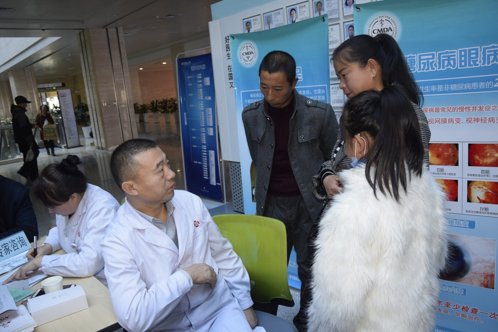 11月14日是第27個聯(lián)合國糖尿病日,其前身是世界糖尿病日,由世界衛(wèi)生組織和國際糖尿病聯(lián)盟于1991年共同發(fā)起,其宗旨是引起全球?qū)μ悄虿〉木X和醒悟。2006年底聯(lián)合國通過決議,從2007年起,將“世界糖尿病日”正式更名為“聯(lián)合國糖尿病日”。今年的宣傳主題是“家庭與糖尿病”。吉林大學附屬中日聯(lián)誼醫(yī)院內(nèi)分泌、糖尿病科主任醫(yī)師、教授張建中等省級專家為100多名糖尿病患者進行空腹血糖檢測、裂隙燈和眼底檢查、葡萄糖耐量實驗、糖化血紅蛋白檢測、周圍神經(jīng)病變檢測等項目檢查。