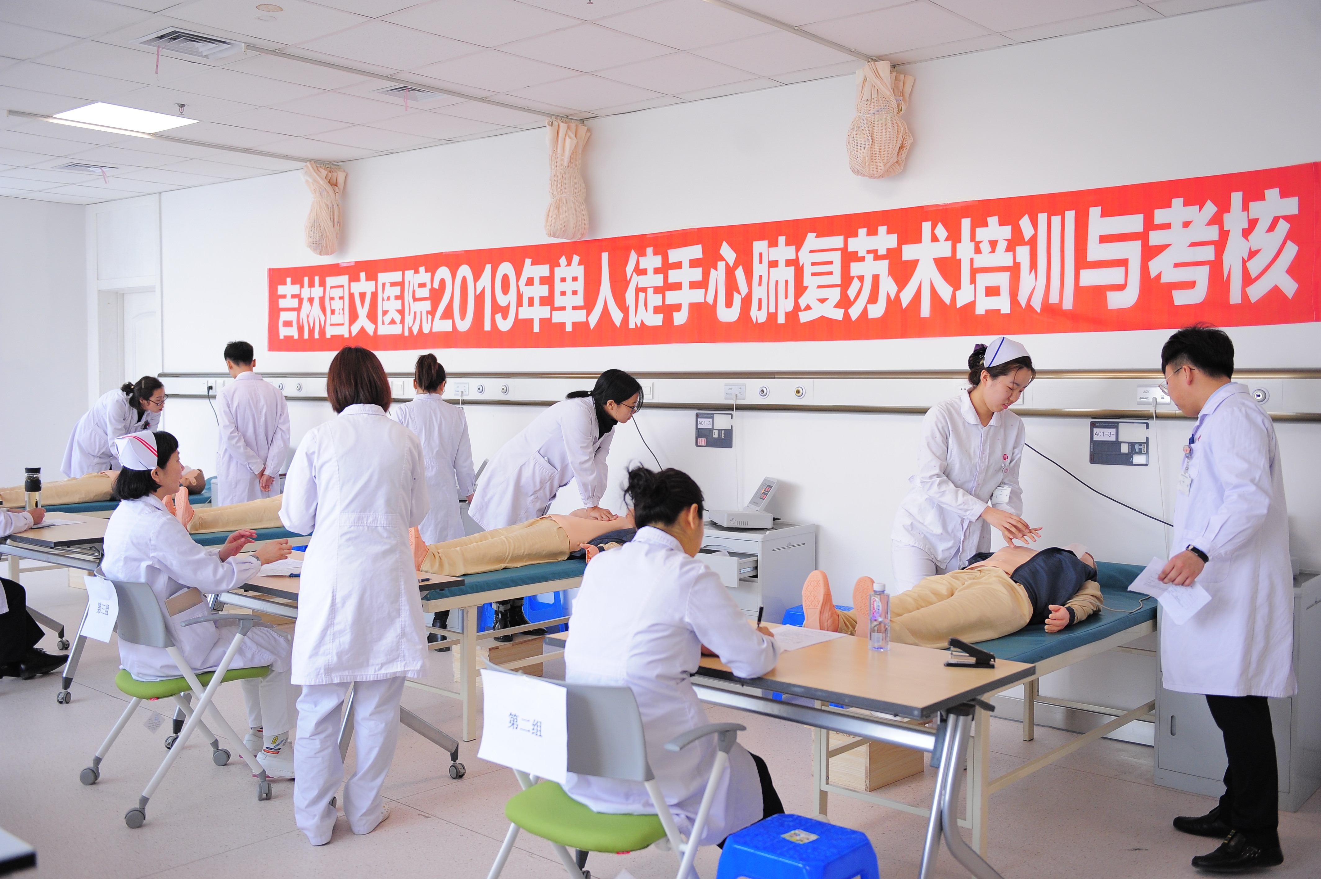 臨床急救知識和技能的訓練,是保證醫(yī)療安全和醫(yī)療質量的重要前提。為加強臨床醫(yī)師對心肺復蘇知識及技能的掌握,提高醫(yī)療服務質量,吉林國文醫(yī)院醫(yī)務處和護理部組織了全員心肺復蘇培訓,制定了完善的《吉林國文醫(yī)院2019年度醫(yī)護人員心肺復蘇培訓與考核方案》,成立考核領導小組和考核評委組。根據培訓計劃安排,全院醫(yī)療醫(yī)技人員分5組進行心肺復蘇術的理論學習和操作技能培訓,培訓結束后分別組織考核并由模擬人與電腦相結合。經過2周認真訓練,1周考核,收到良好效果。