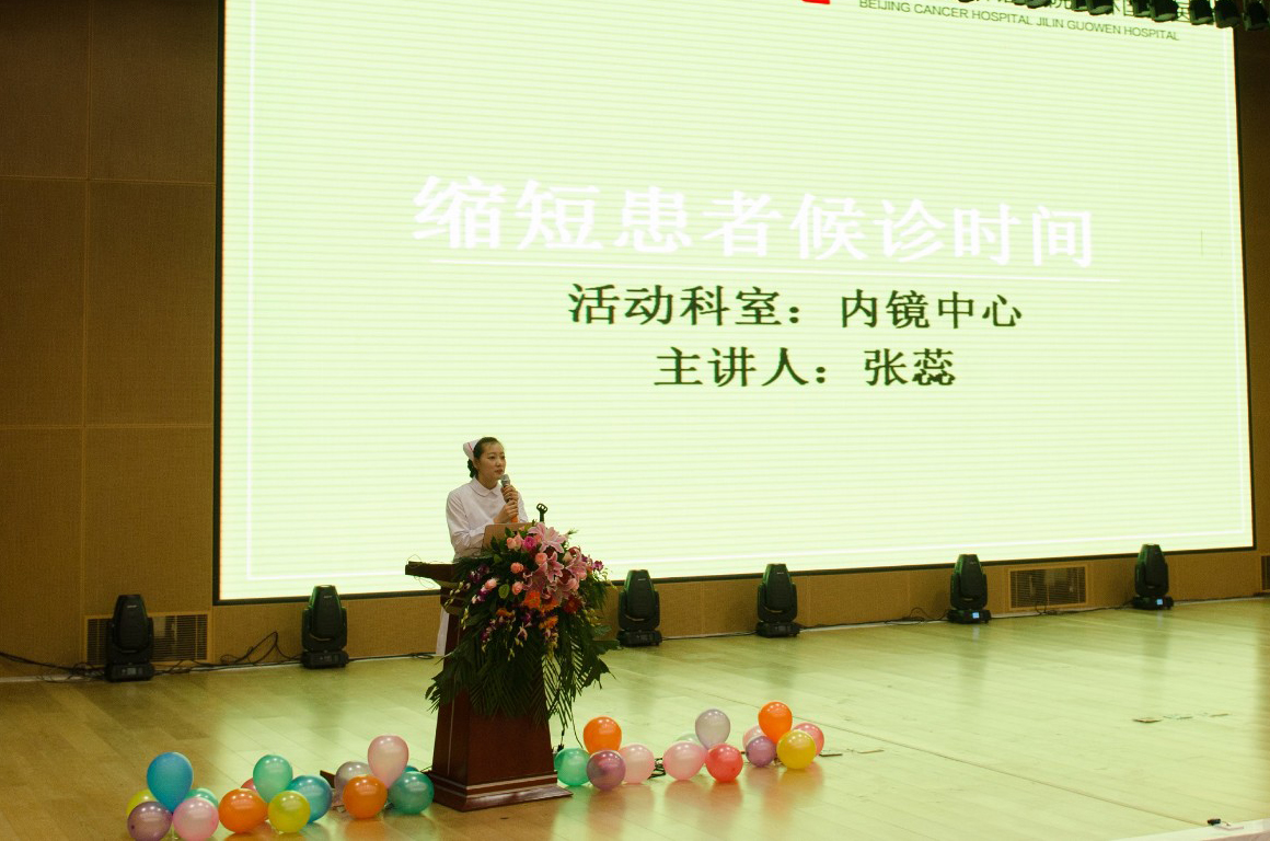 其次是2號(hào)選手內(nèi)鏡中心匯報(bào)了她們的成果項(xiàng)目,主題是《縮短患者候診時(shí)間》;
