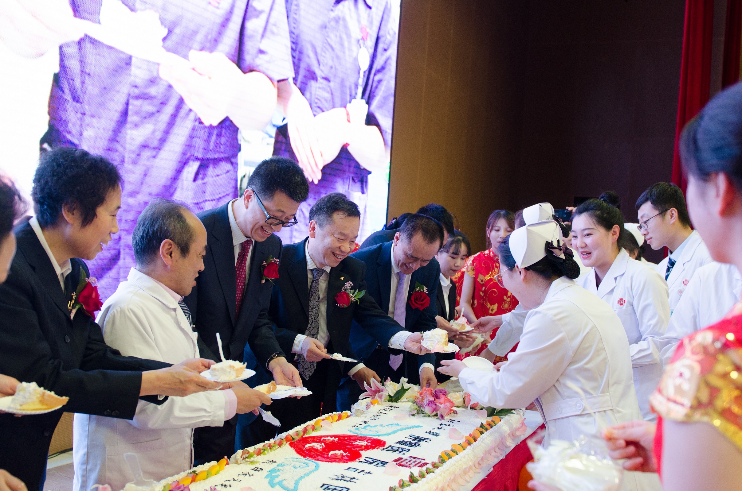 最后,該院還特意訂制了大蛋糕,護(hù)士們現(xiàn)場(chǎng)分享了這一喜悅。
