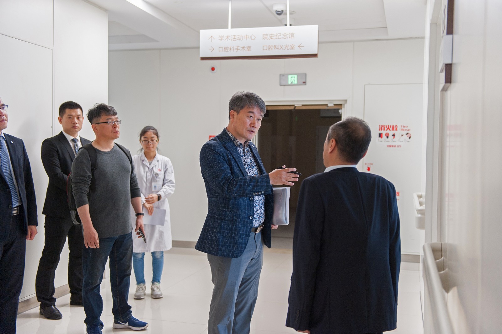 上午9時(shí)30分許,韓國(guó)國(guó)際醫(yī)療文化交流協(xié)會(huì)會(huì)長(zhǎng)權(quán)重發(fā)和會(huì)員孫光原到吉林國(guó)文醫(yī)院口腔科、手術(shù)中心等科室進(jìn)行了參觀考察。