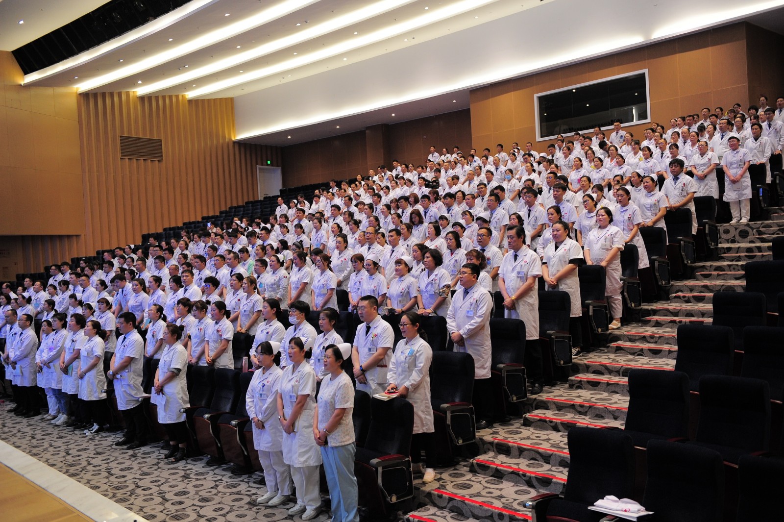 講話完畢,在劉寶安處長(zhǎng)及醫(yī)務(wù)處兩位同事的帶領(lǐng)下,全體參會(huì)人員起立,懷著最飽滿的熱情,齊聲唱響國(guó)歌。