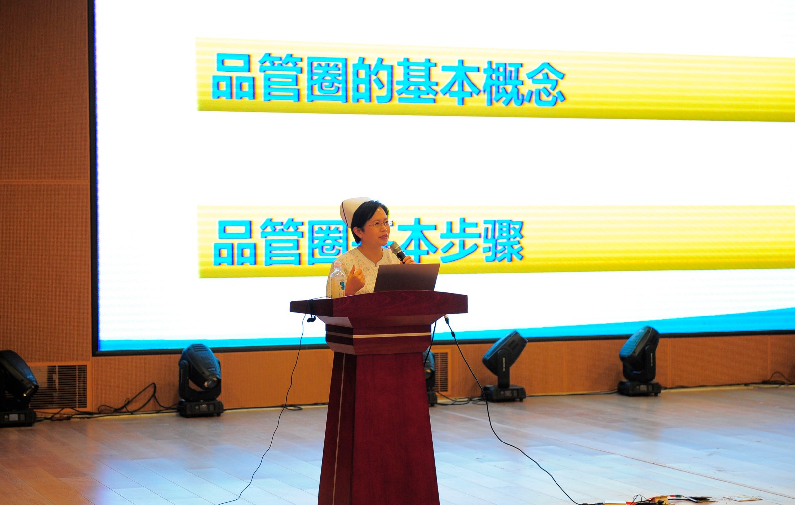 隨后,由吉林大學(xué)第一醫(yī)院手足外科護(hù)士長(zhǎng)潘黎明老師從何謂QCC、為什么開展QCC、如何開展QCC等方面介紹了品管圈的基本概念、精神、組織架構(gòu)、意義及管理方法,指導(dǎo)職工在工作中如何使用品管圈工具,通過選定輔導(dǎo)員、圈長(zhǎng)、圈員及確定圈名、圈徽,主題選定、擬定活動(dòng)計(jì)劃書、現(xiàn)狀把握、目標(biāo)設(shè)定、解析、對(duì)策擬定、對(duì)策實(shí)施與檢討、效果確認(rèn)、標(biāo)準(zhǔn)化、檢討與改進(jìn)這十個(gè)步驟來完善PDCA環(huán)節(jié)的管理,利用品管圈提高職工工作中找出問題、解決問題、逐步提高標(biāo)準(zhǔn)化的能力。