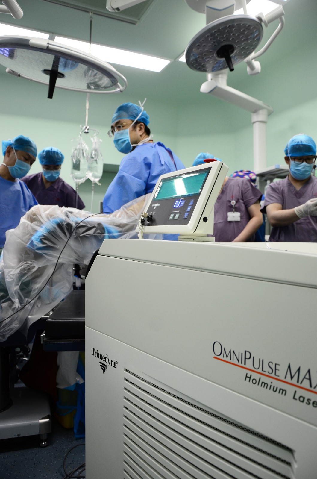 這一新技術適用于上、下尿路結石的治療,尿道狹窄切開、腎盂輸尿管連接部狹窄切開、膀胱結石粉碎、上尿路腫瘤切除、膀胱腫瘤切除、止血、輸尿管口膨出切除、輸尿管息肉切除、前列腺剜除、尿管狹窄、經尿道前列腺切開。